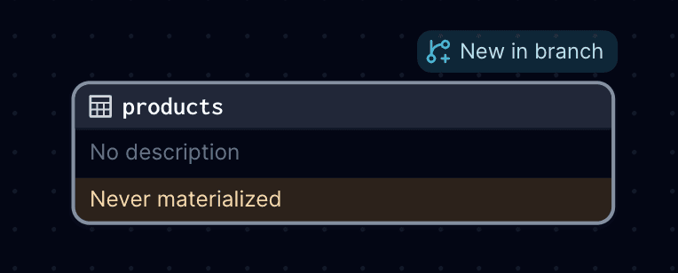 If an asset is new in the branch deployment, the asset will have a New in branch label in the asset graph: